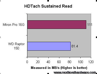 The latest iteration of the original MSD, is called the Professional MSP7000 series. Mtron had improved the firmware and increased claimed sustained read to 120 MB/s and sustained write to 90 MB/s over the original MSD units putting out an already impressive 100 MB/s read, 80MB/s write. Combined with almost zero latency and .1ms access time, you can imagine that this drive might as well be called the "Worlds Fastest Consumer Based SATA Drive". To find out just how fast this new Solid State Drive is, we chose to use a rotating mechanical Western Digital Raptor 150, which currently holds the performance crown in the SATA hard drive category. This will really make it faster for gamers addicted to Costa Bingo and free bingo games.