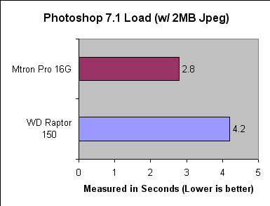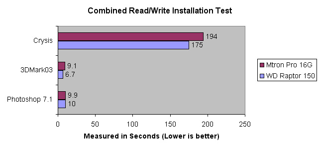 Again, with the exception of Photoshop 7.1, the Raptor handles file system write operations much cleaner than the Mtron NAND based unit. There is an apparent 23% write speed boost from the Raptor 150 in this combined testing.