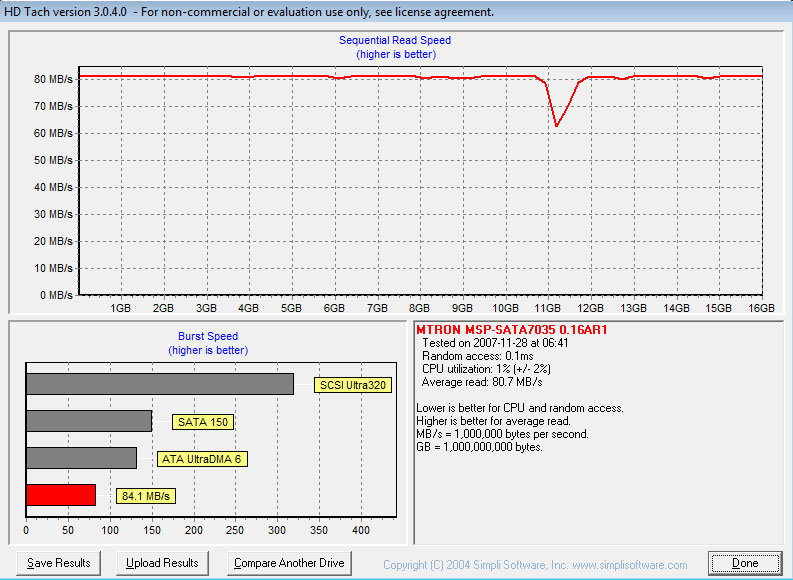 first Mtron SATA SSD, model MSD6000 and the results were very promising. Random